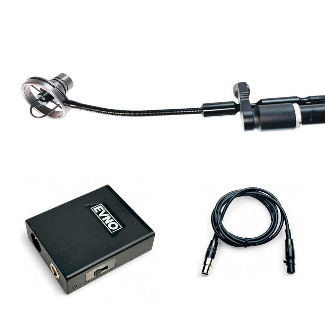 ≈ Shorter 5.5in Gooseneck for close positioning with the H-Clamp (not sold by Evno) or to standard microphone boom stands where tighter gooseneck positioning is desired