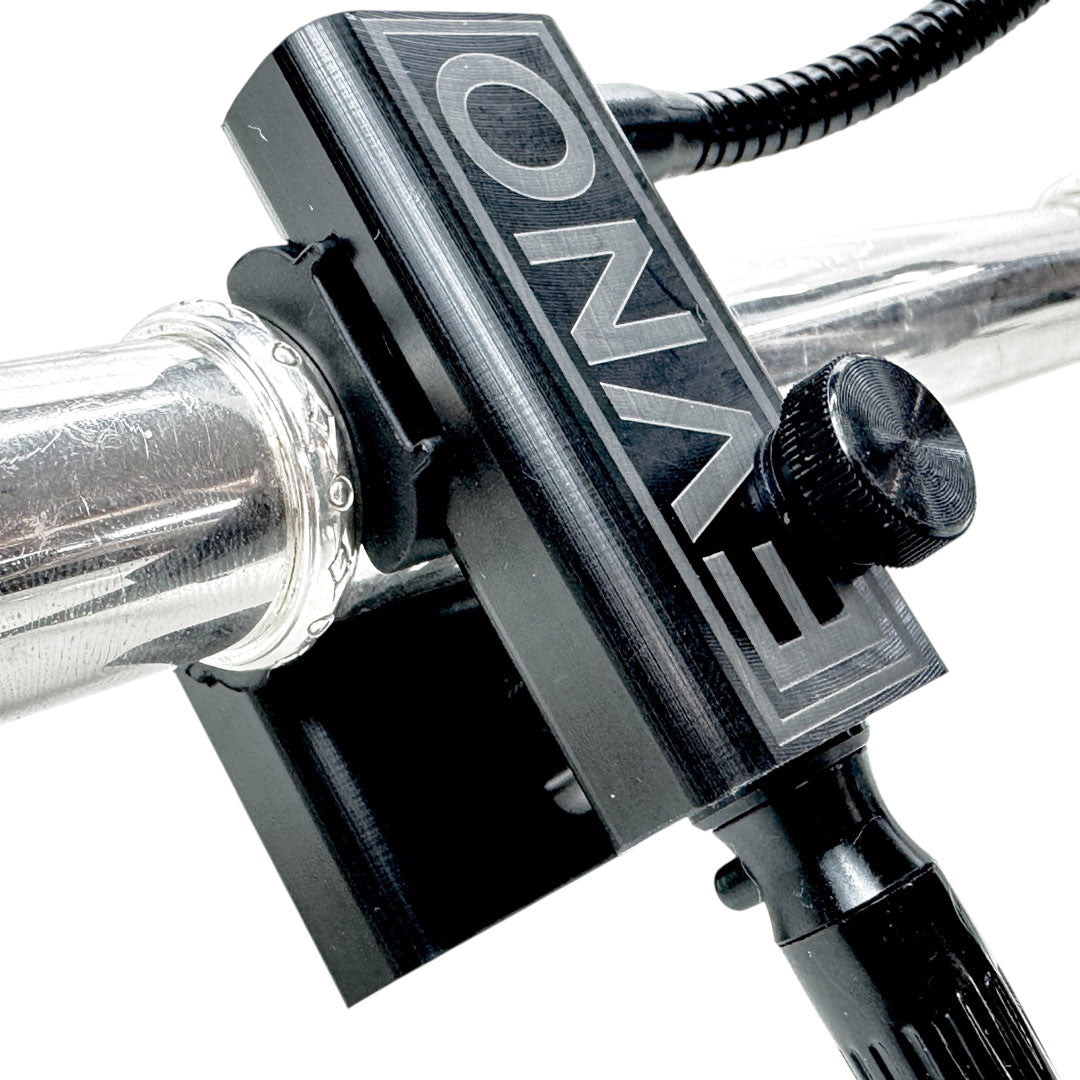 ≈ 5.5” Flex-stay Gooseneck holds positions as needed and above wind stream of mouth piece