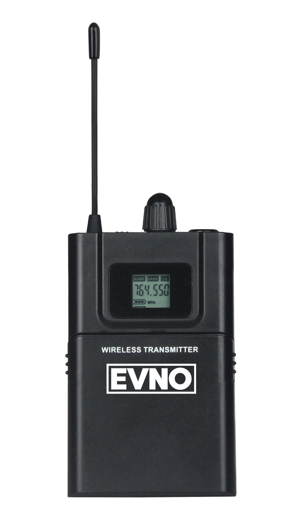 Los sistemas inalámbricos Evno pueden recibir señales de micrófono de una variedad de transmisores Evno, cada uno diseñado para propósitos específicos. Estos transmisores se sincronizan con los sistemas Air, W1-True Diversity y W2-Dual Receiver. Dependiendo de la ubicación y de otros dispositivos inalámbricos en el área, se puede usar una combinación de 5 a 6 sistemas simultáneamente.