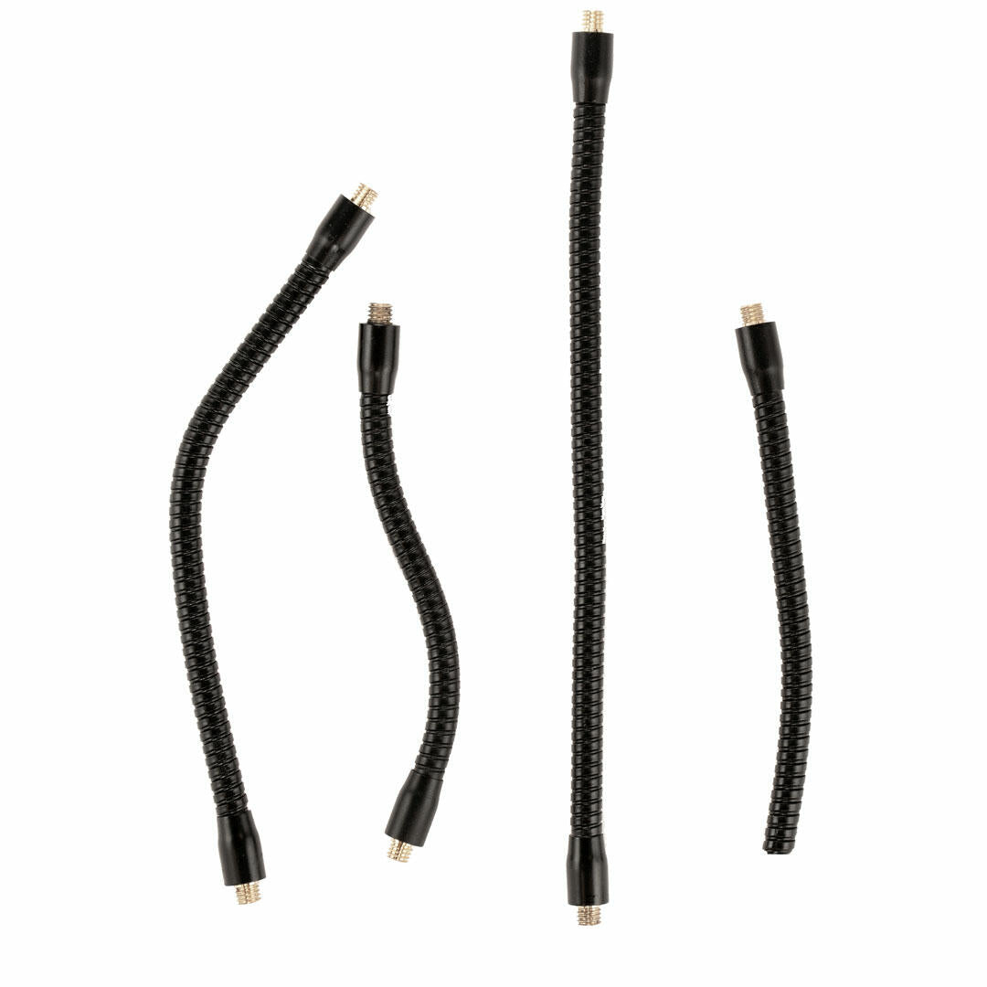 The double flex-stay gooseneck allows movement of the microphones away from the body of the instrument as desired. The microphone is easy to place on and take off the instrument with a screw tightening clamp. The accordion can be set down on its side without disturbance from external jacks of any kind.