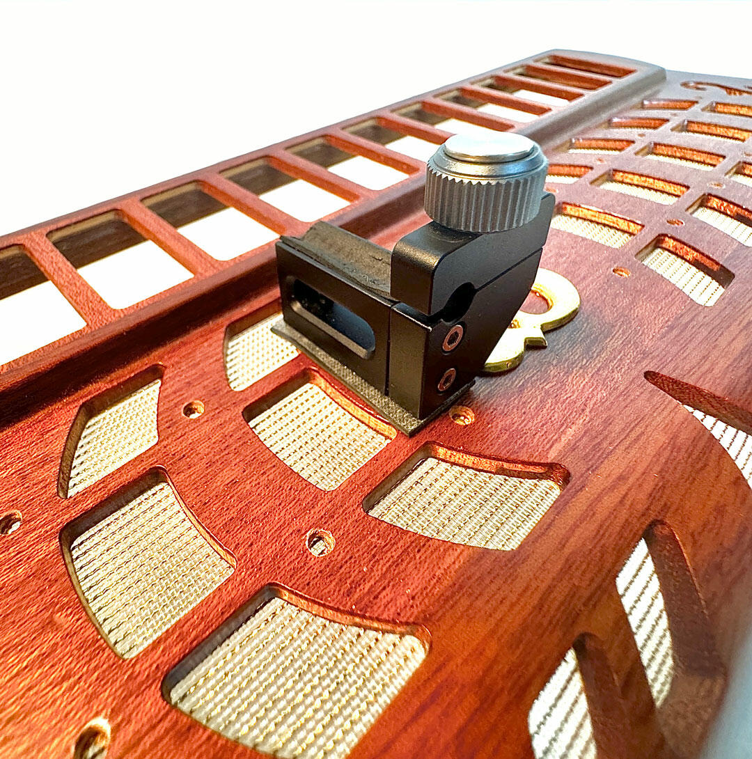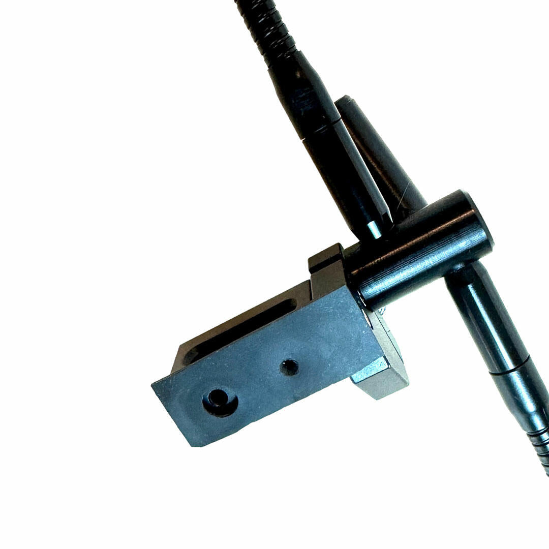 The microphone itself is built with perfect venting as well as a highly attractive machining process creating a beautiful look while allowing the frequencies of the instrument to fully be captured by the microphone itself. Suspended in two standard variable 7 point suspensions, the microphone allows for simple and easy replacements of the O rings as needed. The microphone body is terminated with a 3 pin mini XLR connection which is used for both wired and wireless connections.